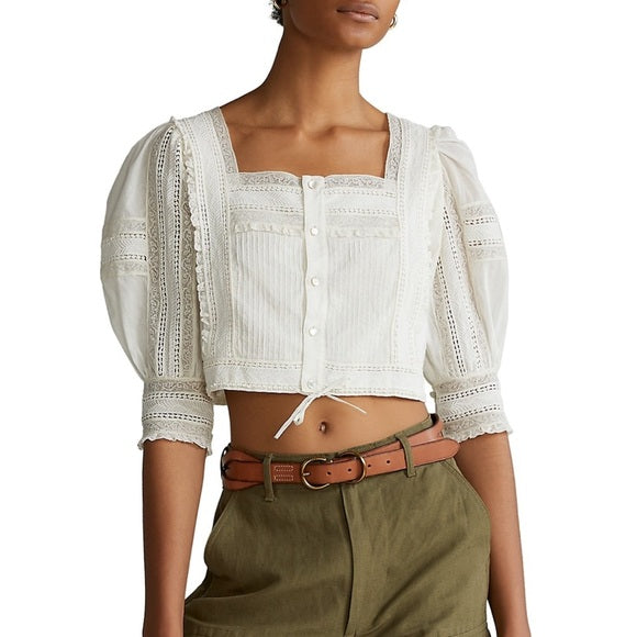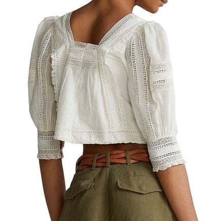 RALPH LAUREN Lace Bluse 100% Cotton Gr.XS