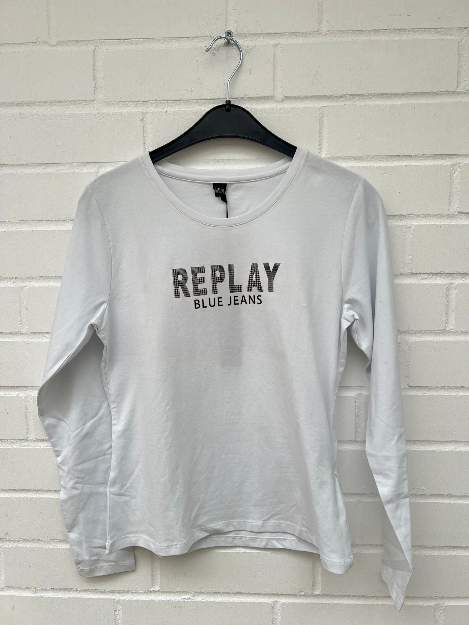 REPLAY Long Sleeve Shirt Logo weiß 100%Cotton GrS