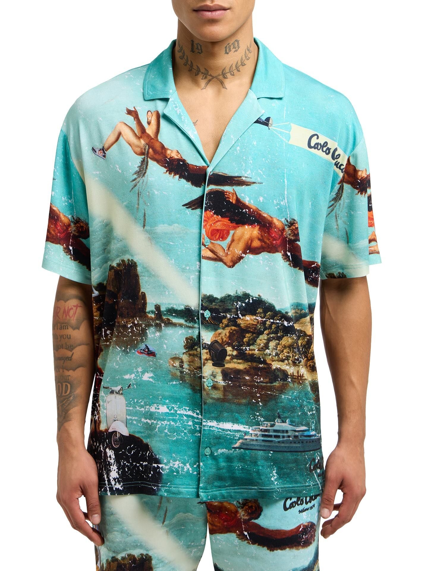 Carlo Colucci Hemd türkis muster -56-