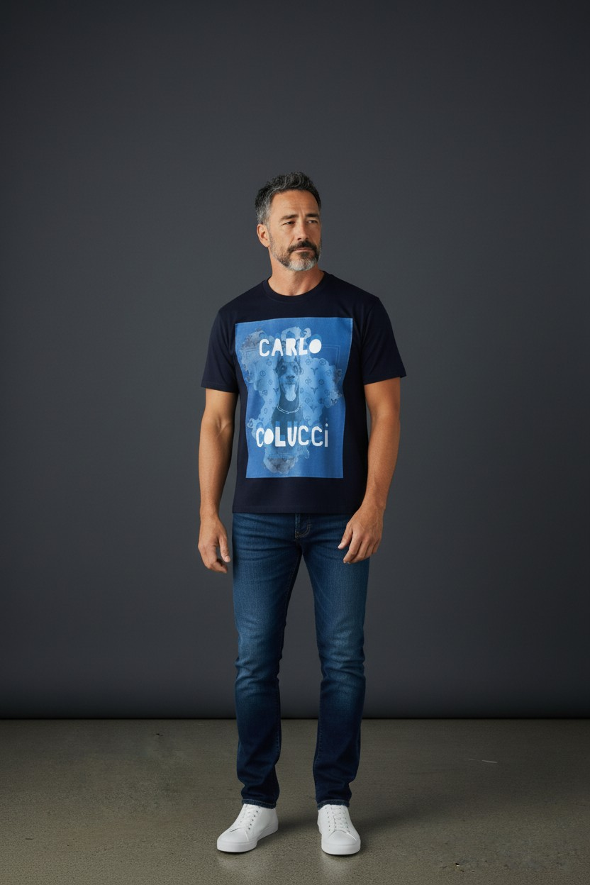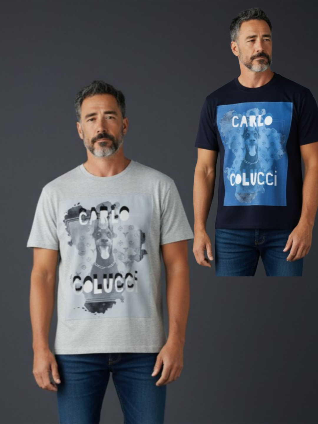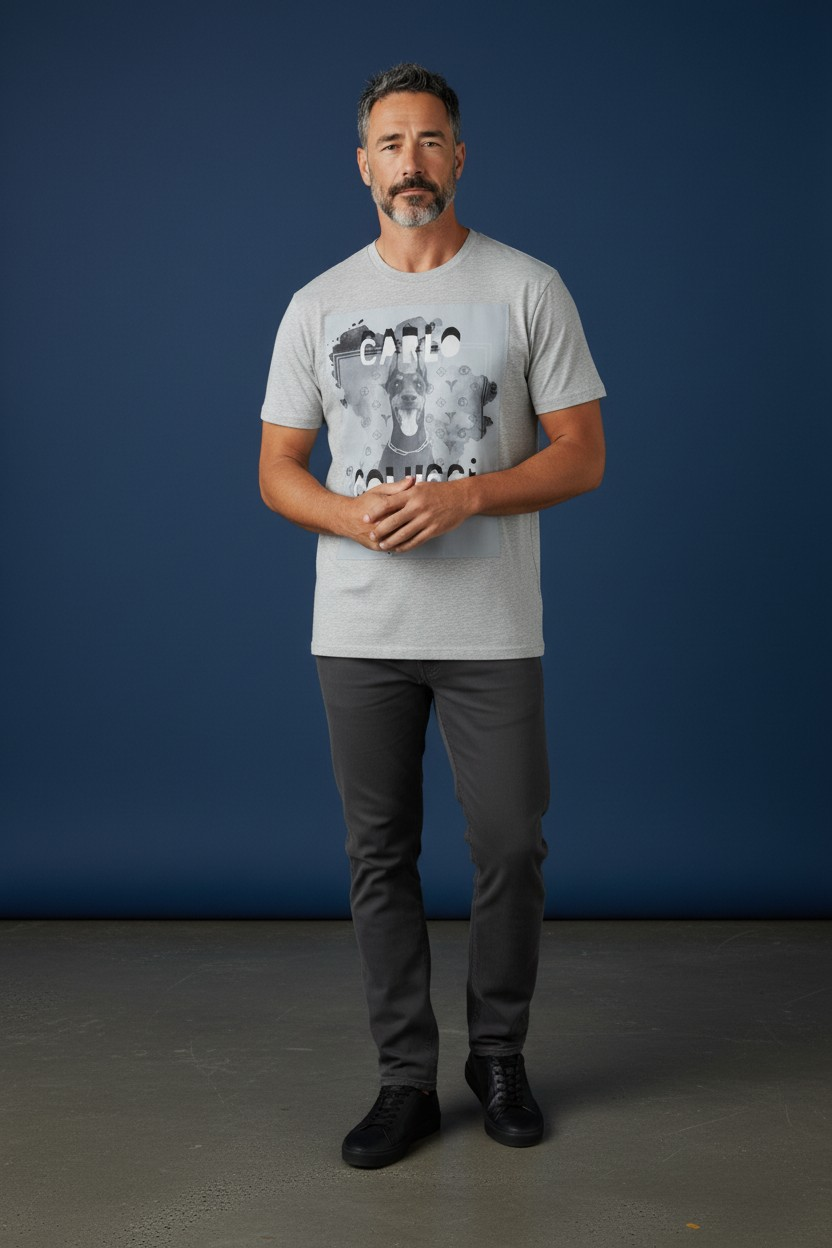 Carlo Colucci Tshirt Dobermann blau/grau 100% Premium Organic Baumwolle Comfort Fit