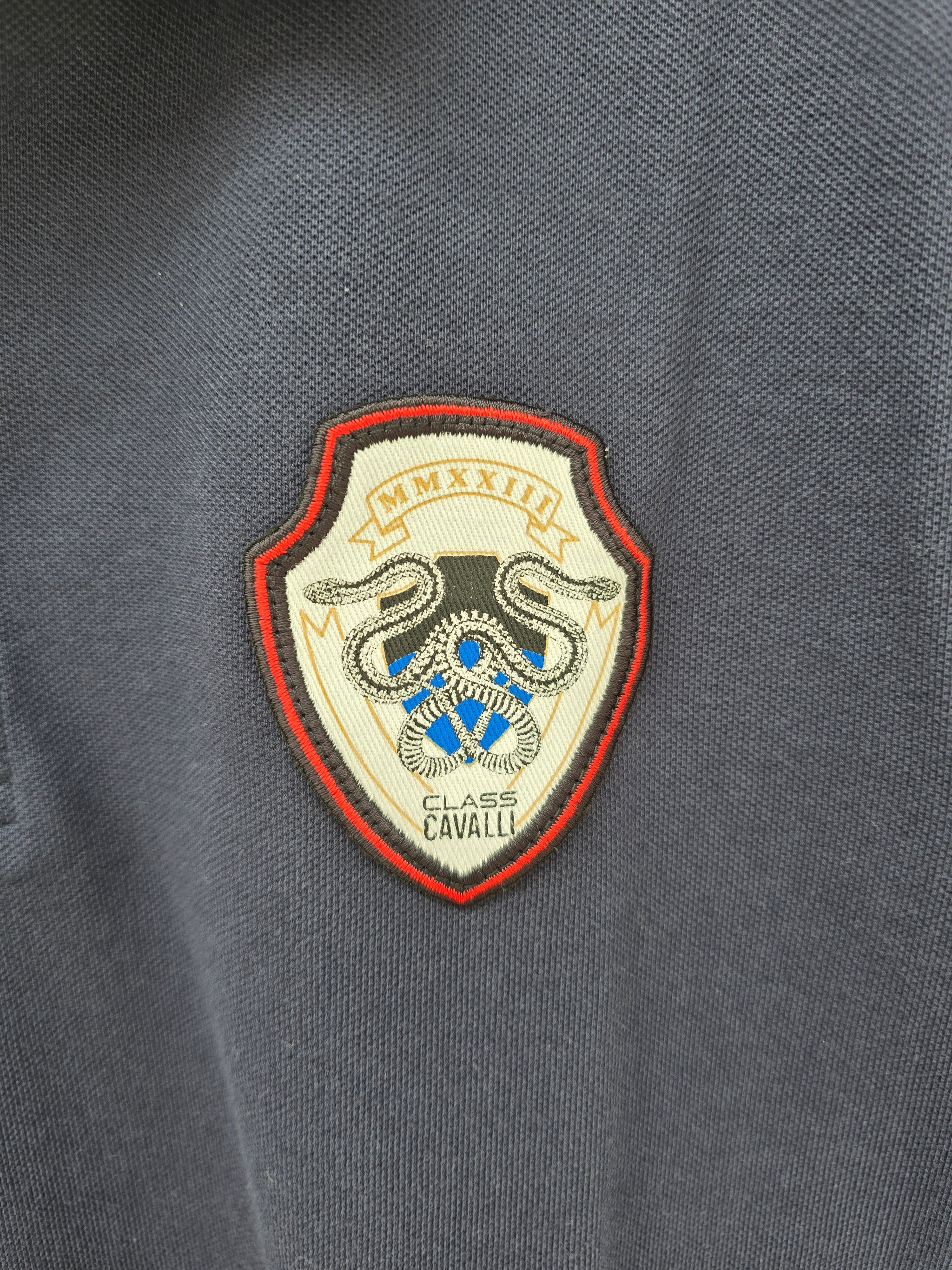 (95) Cavalli Class Poloshirt navyblau Wappen Schlange