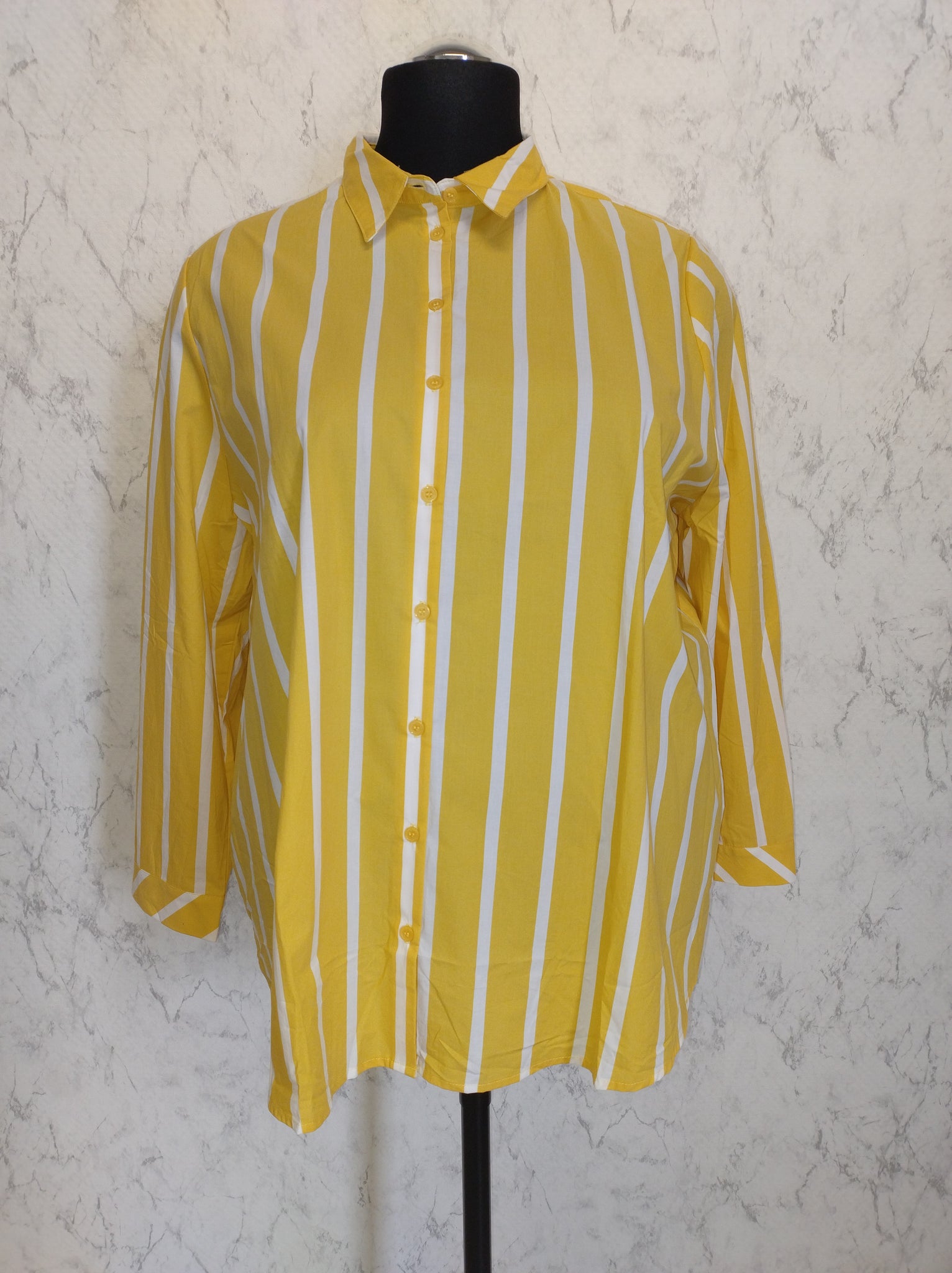 (U7) Ulla Popken Hemd Gelb/weiß gestreift 781793 610