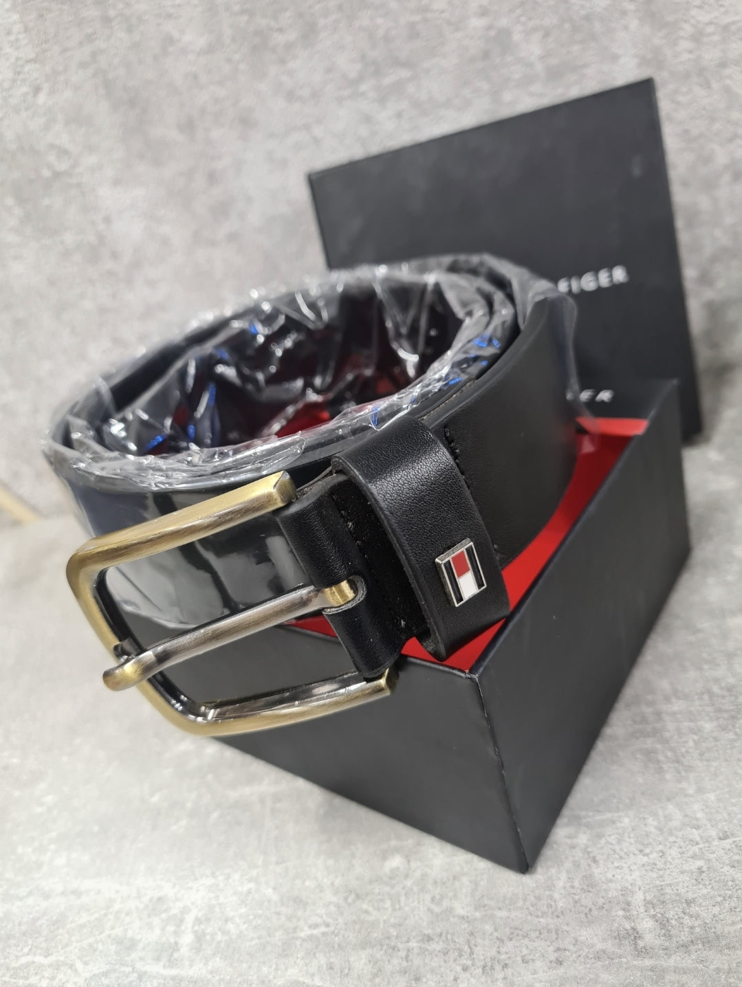 (40) Tommy Hilfiger Herren Gürtel Leder schwarz Schnalle Gold